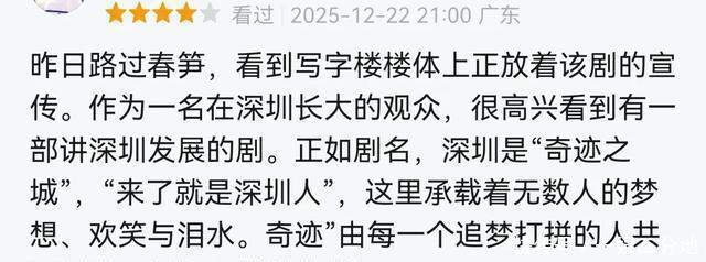 总台首部原创精品短剧《奇迹》今晚开播了,不愧是央妈严选短剧,对于短剧界来说堪称降维打击,不仅剧情生活化浓厚,演员阵容更是无比强大,超�位实力派演员出演了该剧,更有许多老戏骨助阵,先别说剧情,就单看演员阵容,已经够震撼了。       《奇迹》在央视一套和腾讯视频开播,我连񙿥集,来说一下观剧感受。       《奇迹》第一个单元叫《闯南关》,“南”是指南方深圳,“南”又与“难”谐音,所以女主角范姐(闫妮饰演)既是闯南关,更是闯难关。       范姐本是一位戏曲名伶刀马旦,她儿子在深圳开电子公司。范姐退休后,悄悄来到深圳看儿子,岂料找到儿子的公司,发现竟是铁将军把门,门上贴着封条,还有一�万元的欠款催收通知。       眼见儿子公司都倒闭了,就在刚刚却还给她发了祝贺她退休的红包,范姐心里很不是滋味,心疼儿子的她,决定要赚钱帮助儿子渡过难关。       但是范姐年龄大了,找工作困难,于是她盯上了“跑楼”这个活儿。       深圳华强北,大厦里办公族非常多,点外卖也就多,但是大厦里边公司多,地方乱,外卖员跑起来特别费劲,于是就催生了外卖员的“下线”,从外卖员手里抢单的跑楼员。       范姐是新人,没有经验,自然抢不过那些老跑楼员,于是她一咬牙,别𱍆𲲟单,她𾑳𲲟单,很快就收了不少单外卖。不过真正开始跑楼之后,她才知道人生地不熟的厉害,不但没有赚钱,反而还赔�块,还因为恶意市场竞争,被同行和外卖员唾弃。       但是范姐没有认输,从头再来,凭借自己的努力和好头脑,顺利打开了局面,并且加入了王姐的跑楼小组,四个人通力协作,共同完成跑楼任务,合作共赢。       这时候的范姐与王姐聊起来才知道,原来她以为的“儿子公司”竟然是王姐之前开的公司,而她儿子的公司,与王姐公司同名不同音,公司好着呢,哈哈,这个乌龙让范姐喜出望外,但是她也因此在深圳开启了退休后的新生活。       《奇迹》是短剧,每集只�分钟,2集一个小故事,所以故事都不复杂,两三位主演,演绎一个发生在深圳或者与深圳有关的普通人的小故事。       继《武林外传》之后,真想不到竟在这部单元短剧里见到了闫妮和范明再次合作,老搭档还是那么默契,两人的对话,不但接地气,还充满了喜剧色彩。       王姐居然是陶红演的,好久不见,美女即使老了气质演技依然在线。       第二个单元《牛牛》,由中生代帅哥胡歌与新生代帅哥于适主演。       胡歌饰演的张招远,被公司委派,从深圳去西藏发展业务,宣传推广牦牛险,由此发生了一系列有趣又动人的小故事。       在《牛牛》上篇中,张招远由于沟通业务时太过激动,两脚踩了牛粪,又不幸从牛粪上滑倒,直接摔了个“人啃牛粪”,简直是狼狈又好笑。好奇胡歌脸上的不会是真牛粪吧?       该剧完完全全没有一丝一毫的美颜滤镜,所以你可以看清闫妮脸上的皱纹,看到胡歌隐约的白发,更可以看到西藏那超美超蓝的天空,那纯净得没有一丝杂质的白云和绿绿的青草地。       《奇迹》以深�年的发展进程为创作蓝本,�个单元小故事串联起了深圳普通劳动者的奋斗故事,从华强北创业、深交所开市、援藏助农,到生态保护、国贸大厦建设等等,聚焦小人物,展现深圳芸芸众生的奋斗史。       该剧在深圳实景拍摄�多处地标,所以深圳人看这部剧应该会感觉到格外亲切,我在网上也看到了深圳网友对这部剧的评价,称很高兴看到又一部讲深圳发展的剧,该网友还说深圳确实像该剧的剧名一样,是“奇迹之城”,这里承载着无数奋斗者的梦想、欢笑和泪水。       总之,《奇迹》看完𳜅集,感觉作为一部反映现实、反映深圳生活的短剧,该剧质量还是可以的,演员阵容都是大家熟悉的老面孔、实力派,进入剧情、共情角色可以非常丝滑。       后面还有雷佳音、宋佳、郭京飞、张颂文、王骁等众多实力派演绎的各行各业的深圳故事,就让我们一起期待吧!